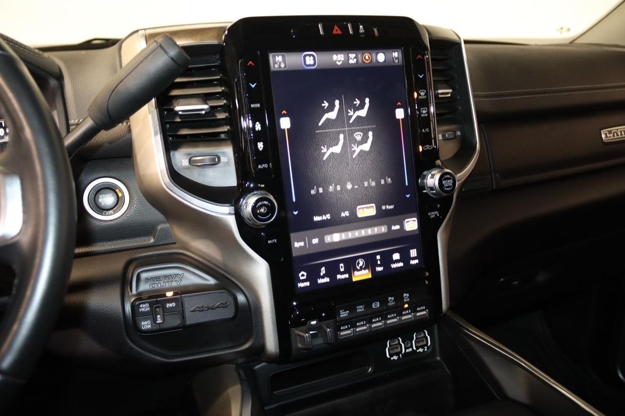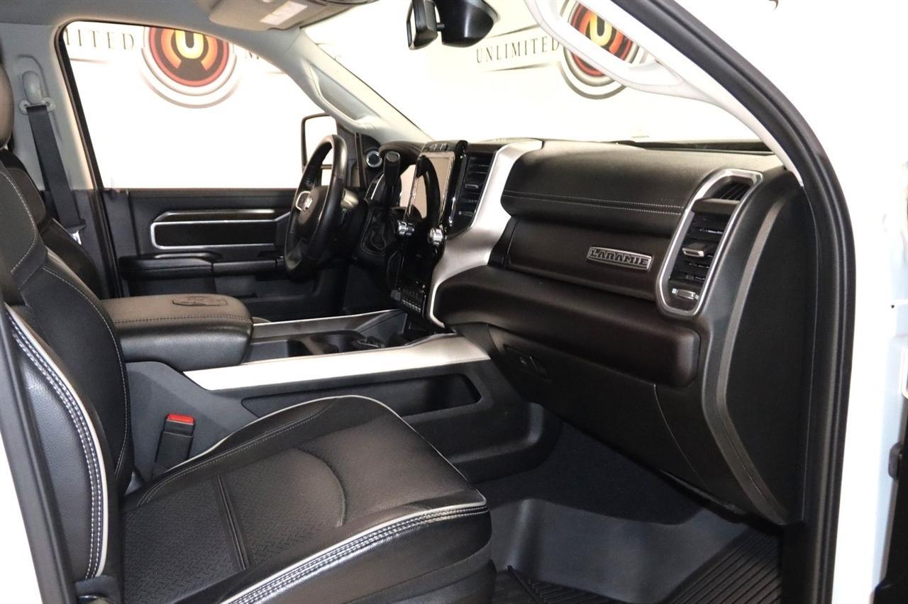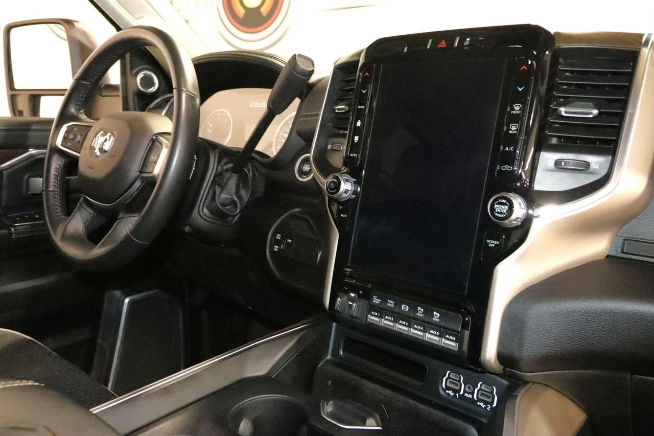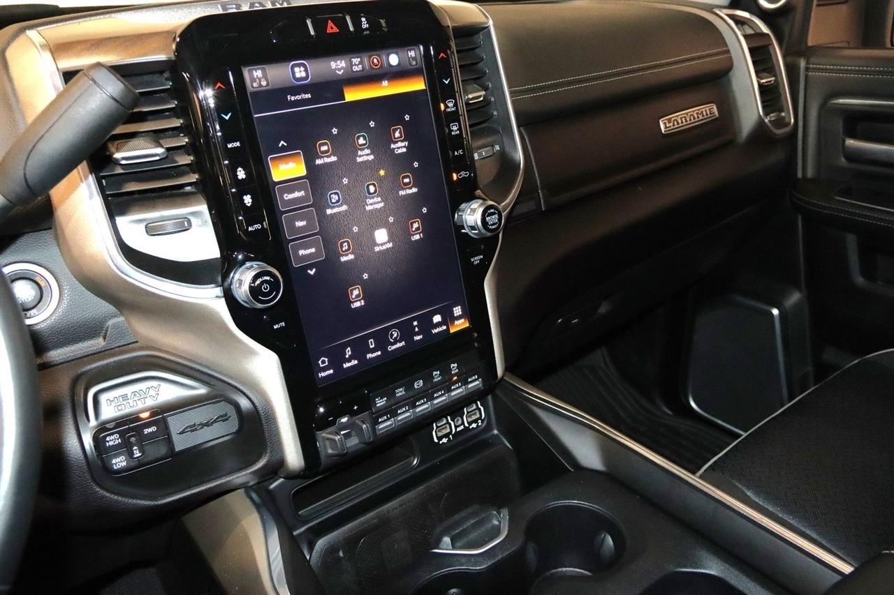 Navigation, Bluetooth, Back Up Camera, Towing, Heated Seats, Touch Screen, 10 Speakers, 115V Auxiliary Rear Power Outlet, 12 Touchscreen Display, 17 Speaker harman/kardon Premium Sound, 18 x 8 Polished Aluminum Wheels, 2 Way Rear Headrest Seat, 220 Amp Alternator, 2nd Row In Floor Storage Bins, 3.73 Axle Ratio, 4 Way Front Headrests, 4-Wheel Disc Brakes, 4G LTE Wi-Fi Hot Spot, 50 Gallon Fuel Tank, 5th Wheel/Gooseneck Towing Prep Group, 8.4 Touchscreen Display, ABS brakes, Active Noise Control System, Air Conditioning, Alexa Built-In, All R1 High Radios, All Radio Equipped Vehicles, Alloy wheels, AM/FM radio: SiriusXM with 360L, Apple CarPlay, Apple CarPlay/Android Auto, Auto Adjust In Reverse Exterior Mirrors, Auto Dimming Exterior Passenger Mirror, Auto High Beam Headlamp Control, Auto Level Rear Air Suspension, Auto Power-Folding Mirrors, Auto-Dimming Exterior Mirrors, Auto-dimming Rear-View mirror, Automatic temperature control, Blind Spot & Cross Path Detection, Brake assist, Bumpers: body-color, Center Hub, Chrome Exterior Mirrors, Clearance Lamps, Compass, Connected Travel & Traffic Services, Connectivity - US/Canada, Dash Pass Thru Wire Circuits, Delay-off headlights, Disassociated Touchscreen Display, Driver door bin, Driver vanity mirror, Dual front impact airbags, Dual front side impact airbags, Electronic Stability Control, Electronically Controlled Throttle, Exterior Mirrors Courtesy Lamps, Exterior Mirrors w/Heating Element, Exterior Mirrors w/Memory, Exterior Mirrors w/Supplemental Signals, Foam Bottle Insert (Door Trim Panel), Folding Flat Load Floor Storage, For Details Visit DriveUconnect.com, For More Info, Call 800-643-2112, Forward & Reverse Utility Lights, Front anti-roll bar, Front Center Armrest w/Storage, Front dual zone A/C, Front LED Fog Lamps, Front reading lights, Front Seat Back Map Pockets, Fully automatic headlights, Garage door transmitter, Global Telematics Box Module (TBM), Google Android Auto, GPS Antenna Input, GPS Navigation, HD Radio, Heated door mirrors, Heated Front Seats, Heated front seats, Heated Second Row Seats, Heated Steering Wheel, Heated steering wheel, High Back Seats, I/P Mounted Auxiliary Switches, Illuminated entry, Integrated Center Stack Radio, Integrated Voice Command w/Bluetooth, Laramie Level B Equipment Group, Leather steering wheel, Leather Trim 40/20/40 Bench Seat, LED Reflector Headlamps, LED Tail Lamps, Low tire pressure warning, Mirror Running Lights, MOPAR Front & Rear Rubber Floor Mats, MOPAR Spray In Bedliner, Navigation System, Occupant sensing airbag, Off-Road Information Pages, Outside temperature display, Overhead airbag, Overhead console, Panic alarm, ParkSense Front/Rear Park Assist System, ParkView Rear Back-Up Camera, Passenger door bin, Passenger vanity mirror, Power 8-Way Adjustable Passenger Seat, Power Adjust 8-Way Driver Seat, Power Adjust Mirrors, Power Adjustable Pedals w/Memory, Power door mirrors, Power driver seat, Power Heat Fold Memory Telescopic Mirrors, Power passenger seat, Power steering, Power Telescoping Mirrors, Power windows, Power-Adjustable Convex Aux Mirrors, Quick Order Package 21H Laramie, Radio data system, Radio: Uconnect 5 Nav w/12.0 Display, Radio: Uconnect 5 Nav w/8.4 Display, Rain Sensitive Windshield Wipers, Rear 60/40 Folding Seat, Rear Power Sliding Window, Rear reading lights, Rear seat center armrest, Rear step bumper, Rear Window Defroster, Remote keyless entry, Remote Tailgate Release, Security system, Selectable Tire Fill Alert, SiriusXM Radio Service, SiriusXM w/360L, Speed control, Split folding rear seat, Steering wheel mounted audio controls, Tachometer, Tilt steering wheel, Tip Start, Traction control, Trailer Tow Pages, Trip computer, Turn signal indicator mirrors, Variably intermittent wipers, Voltmeter, Wheels: 18 x 8.0 Polished Aluminum. CARFAX One-Owner. Clean CARFAX. Odometer is 9267 miles below market average!2024 Pearl White Ram 4D Crew Cab 3500 Laramie 4WD 6-Speed Automatic Cummins 6.7