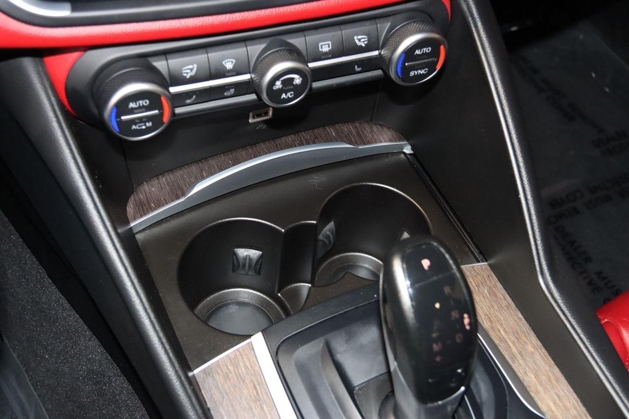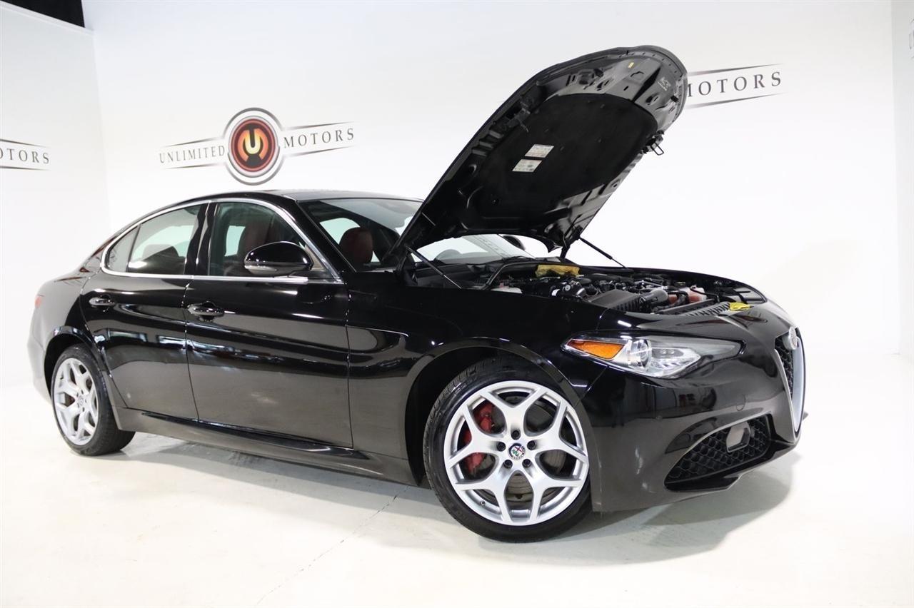Bluetooth, Back Up Camera, Panoramic Roof, Touch Screen, 4-Wheel Disc Brakes, 8 Speakers, 8.8 Widescreen Color Display, ABS brakes, Air Conditioning, Alloy wheels, AM/FM radio: SiriusXM, Apple CarPlay/Android Auto, Auto-Dimming Exterior Mirrors, Auto-dimming Rear-View mirror, Automatic temperature control, Blind Spot & Cross Path Detection, Brake assist, Bumpers: body-color, Calipers Gloss Red w/White Script, Colored Brake Calipers, Compass, Delay-off headlights, Driver Assistance Static Package, Driver door bin, Driver vanity mirror, Dual front impact airbags, Dual front side impact airbags, Dual-Pane Sunroof, Electronic Stability Control, Exterior Parking Camera Rear, Four wheel independent suspension, Front anti-roll bar, Front Bucket Seats, Front Center Armrest, Front dual zone A/C, Front reading lights, Full Speed FWD Collision Warn Plus, Fully automatic headlights, Garage door transmitter, Genuine wood console insert, Genuine wood dashboard insert, Genuine wood door panel insert, Gloss Black Shark Fin Antenna, Heated door mirrors, Heated front seats, Heated steering wheel, High intensity discharge headlights: Bi-Xenon, Illuminated entry, Knee airbag, Leather Seats, Leather steering wheel, Low tire pressure warning, Memory seat, Occupant sensing airbag, Outside temperature display, Overhead airbag, Overhead console, Panic alarm, Passenger door bin, Passenger vanity mirror, Power door mirrors, Power driver seat, Power passenger seat, Power steering, Power windows, Quick Order Package 22G, Radio data system, Radio: AM/FM Bluetooth 8.8, Rain sensing wipers, Rear anti-roll bar, Rear fog lights, Rear reading lights, Rear seat center armrest, Rear window defroster, Remote keyless entry, Security system, Speed control, Speed-sensing steering, Speed-Sensitive Wipers, Split folding rear seat, Steering wheel mounted audio controls, Tachometer, Telescoping steering wheel, Tilt steering wheel, Traction control, Trip computer, Turn signal indicator mirrors, Variably intermittent wipers, Wheels: 18 x 8.0 Double Y-Spoke Aluminum. 23/31 City/Highway MPG Odometer is 21031 miles below market average! Priced below KBB Fair Purchase Price!2019 Alfa Black Alfa Romeo 4D Sedan Giulia Ti AWD 8-Speed Automatic I4Visit our website www.iumotors.com to view 100s of newer vehicles, more pictures and info, or to apply for financing. Rates are incredibly low for approved credit. We offer extended warranties, protection packages, and insurance. We assure you the best experience at any of our 4 locations and unbeatable prices and quality. At Unlimited Motors we believe in MARKET VALUE PRICING. We use real-time Internet price comparisons to constantly adjust prices to provide ALL BUYERS The BEST PRICE possible. We do not mark them up, to mark them down! Our entire team is committed to helping you buy a car the way we would want to buy a car! We utilize state-of-the-art technology to constantly monitor pricing trends to offer our shoppers the best competitive pricing, value, and experience. We sell and service all makes and models of Pre-owned / Used Vehicles Used Cars, Used Trucks, Used Sport Utility, Lamborghini, Ferrari, Bentley, Rolls Royce, McLaren, Maserati, Ford, Chevrolet/Chevy, Honda, Toyota, Porsche, Land Rover, Jaguar, INFINITI, Audi, Nissan, Mazda, Hyundai, Chrysler, Jeep, Dodge, Ram, SRT, Mitsubishi, Lexus, Kia, Volkswagen, Mini, BMW, Mercedes, Fiat, Volvo, GMC, Cadillac, Lincoln as well as other brands. Proudly serving these areas of Indianapolis, Fishers, Carmel, Noblesville, Greenwood, Avon, Plainfield, Zionsville, & Brownsburg, Indiana, Midwest. We also serve the entire nation with our seamless and easy online purchasing process, and offer shipping nationwide.Advertised prices DO NOT include Sales Tax, Dealer Fees, Title Processing Charges, and Dealer Pre-installed Products.